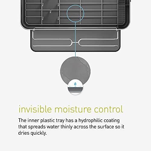 Simplehuman Kitchen Dish Drying Rack with Swivel Spout, Fingerprint-Proof Stainless Steel Frame, Grey Plastic